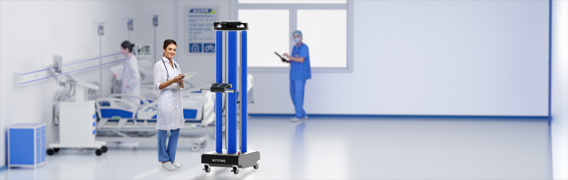 The SOTO-RA air medical air purifier robot integrates advanced air purification and disinfection technologies with an intelligent robotic system. Equipped with autonomous navigation capabilities, it enables mobile air purification and disinfection in diverse indoor environments.