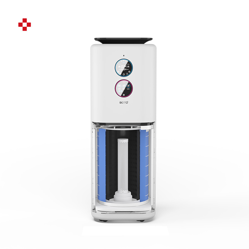 Different from conventional air purifier, the UV-Photo catalyst system is constructed in the center of the filter to destroy pathogens and break down harmful pollutants. In addition, the plasma generator is located at the air outlet to maximize air purification and sterilization performance.