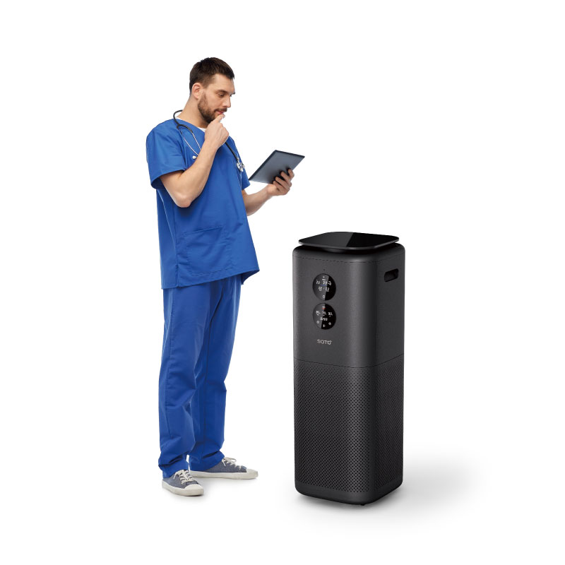 SOTO-Y9医疗空气消毒机不仅搭载了高效的空气过滤系统与紫外线光触媒消毒技术,还配备了防尘感应面板及双显示屏功能,显著提升了设备的操作便捷性与实时监测能力。